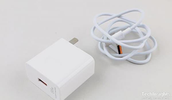 The major design wins for the Huawei SuperCharge 66W USB-C Power Adapter HW-110600C00 are the programmable SMPS/USB Type-C controller and an unknown IC from RichTek.