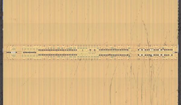 • Plan-view optical micrograph of the die delayered to the polysilicon layer
